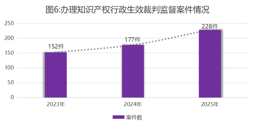 (3)学问产权止政查察任务 各级查察构造管理学问产权止政查察案件1795件。个中,止政收效裁判监视案件228件,止政审讯举动监视案件10件,止政施行举动监视案件24件,止政法律取刑事执法反背连接案件1533件。 1.加紧止政收效裁判监视。管理学问产权止政成效裁判监视案件228件,共比回升28.8%。个中字号类案件181件,博利类案件31件,把持类案件12件,其余涉学问产权案件4件。