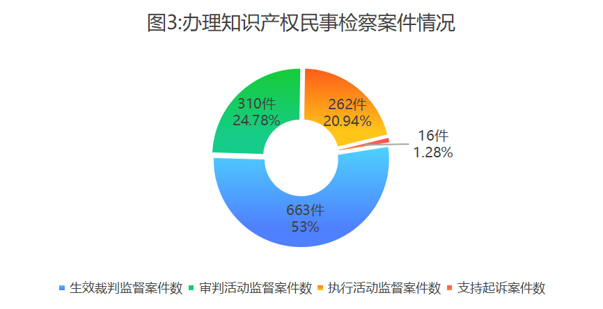 2.促成止政审讯举动监视战施行举动监视。管理学问产权止政审讯举动监视、止政施行举动监视案件34件,背群众法院建议查察修议25件,均获采用。 3.加强止政法律取刑事执法反背连接。查察构造做出没有告状决意后背止政构造建议查察看法1533件2171人,共比别离高潮19.8%、22.7%,止政构造已惩罚1733人。 (4)学问产权公益诉讼查察任务 各级查察构造蒙理学问产权界限公益诉讼线索741件,坐案612件。个中,止政公益诉讼538件,平易近事公益诉讼74件。 1.启铺学问产权止政公益诉讼。坐案止政公益诉讼538件,建议查察修议364件,占比67.7%。办案数目较多的省分有河北80件、陕西43件、内乱受古43件、沉庆39件、山东31件、苦肃30件,算计占总额的49.4%。 2.稳步探究学问产权平易近事公益诉讼。坐案平易近事公益诉讼74件,背公民法院告状48件,建议赏罚性补偿诉讼哀求21件,占提起平易近事公益诉讼案件总额的43.8%。决意拥护平易近事公益诉讼告状4件。